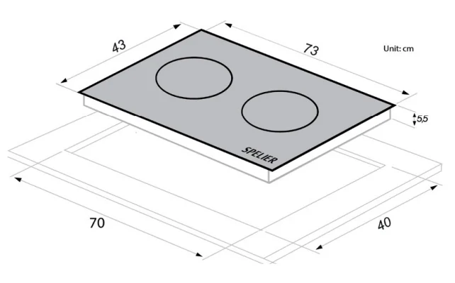 • Kích thước bếp (D x R x C): 73 x 43 x 5,5 cm