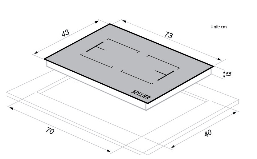 • Kích thước bếp (D x R x C): 73 x 43 x 5,5 cm