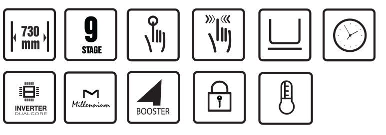 • 01 vùng nấu cảm ứng từ công suất: 2200W • 01 vùng nấu cảm ứng từ công suất: 2600W • Đế bếp làm bằng inox 304 sáng bóng chống rỉ sét • Mặt kính “Ceramic” M – millennium thế hệ mới , công nghệ in gương ( Mirror – printing ) độc đáo, mài vát 4 cạnh tinh xảo, bo viền nhôm cao cấp • Công nghệ “Dual core inverter” siêu tiết kiệm năng lượng • Hệ thống điều khiển“Slider Control”cảm ứng điện cực, nhanh và chính xác • Tính năng Booster giúp nấu ăn nhanh • Tính năng tạm dừng “Stop and Go” • Tích hợp công nghệ sôi lăn tăn ở mức công suất thấp • Công nghệ khử nhiễu từ bảo vệ các thiết bị điện xung quanh • Tính năng ủ ấm, rã đông linh hoạt nhiều cấp độ (55 C, 65 º ºC, 75 ºC ) • Tính năng chiên xào riêng biệt • Tính năng hẹn giờ trên mỗi vùng nấu • Tính năng độc lập công suất từng vùng nấu • Tính năng tự nhận diện vùng nấu |
