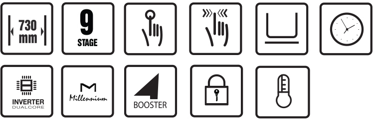 • 01 vùng nấu cảm ứng từ công suất: 2200W • 01 vùng nấu cảm ứng từ công suất: 2600W • Đế bếp làm bằng inox 304 sáng bóng chống rỉ sét • Mặt kính “Ceramic” M – millennium thế hệ mới công nghệ in gương ( Mirror – printing ) độc đáo , mài vát 4 cạnh tinh xảo, bo viền nhôm cao cấp • Công nghệ “Dual core inverter” siêu tiết kiệm năng lượng • Hệ thống điều khiển “Slider Control” cảm ứng điện cực, nhanh và chính xác • Tính năng Booster giúp nấu ăn nhanh • Tính năng tạm dừng “Stop and Go” • Tính năng ủ ấm, rã đông linh hoạt nhiều cấp độ (55ºC, 65ºC, 75ºC) • Tính năng chiên xào riêng biệt • Tích hợp công nghệ sôi lăn tăn ở mức công suất thấp • Công nghệ khử nhiễu từ bảo vệ các thiết bị điện xung quanh • Tính năng hẹn giờ trên mỗi vùng nấu • Tính năng độc lập công suất từng vùng nấu • Tính năng tự nhận diện vùng nấu |