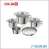 Bộ nồi bao gồm: 1 quánh 1.4 lít, 1 chảo chiên 28 cm, 1 nồi 2 lít, 1 nồi 3 lít, nồi 6 lít.