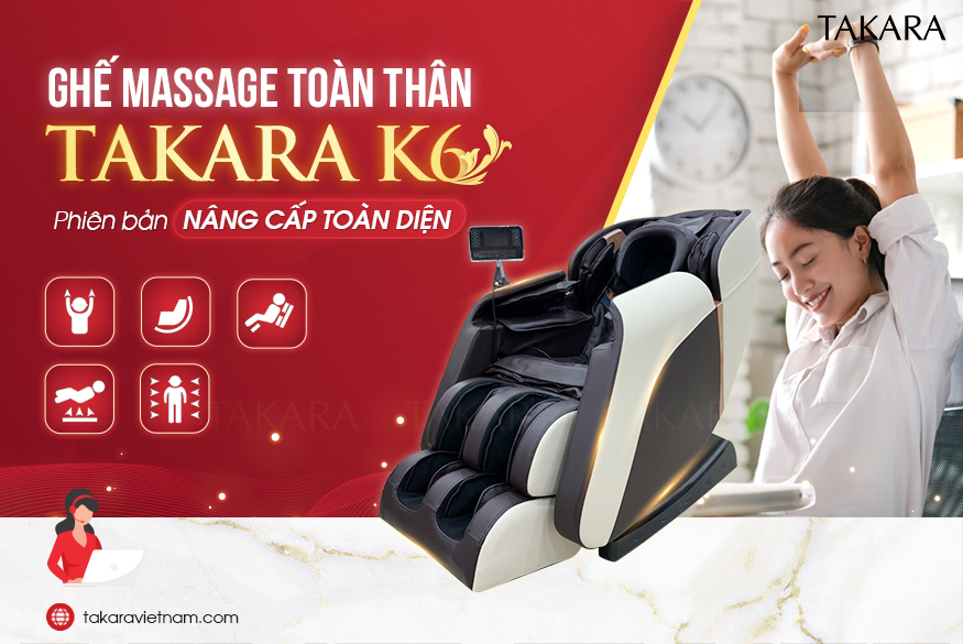 Takara K6 luôn xứng đáng với biệt danh ghế massage ” quốc dân”. Nếu quí khách hài lòng và muốn biết thêm chi tiết về sản phẩm cũng như các chương trình khuyến mãi vui lòng liên hệ với TakaraVietNam để bộ phận chăm sóc khách hàng chăm sóc tốt nhất