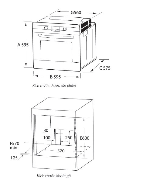 – Kích thước khoét gỗ: R570 x S580 x C580 mm