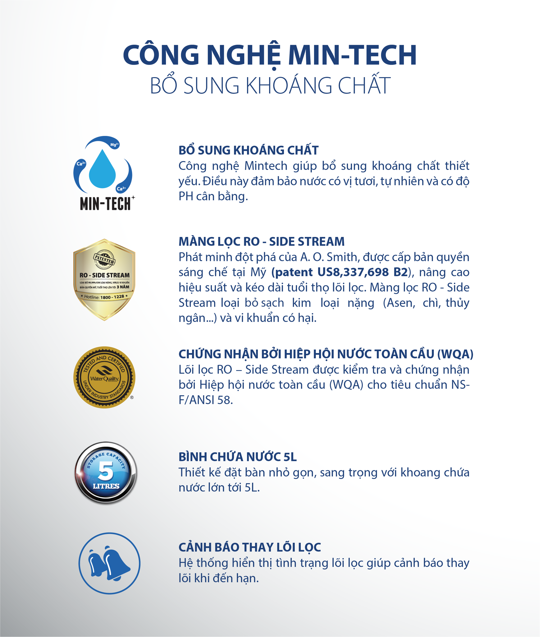 Lõi lọc GAC Min-Tech: Khử mùi, điều chỉnh vị và bổ sung khoáng chất thiết yếu cho nước, đảm bảo nước có vị tươi, tự nhiên và có độ pH cân bằng.